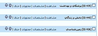یکی از ابزارهای برنامه برای سازماندهی محتوا، فلش های جابجایی صفحات و مطالب می باشد. گاهی به دلیل جابجایی مکرر یا حذف برخی مطالب و صفحات، دکمه های بالا و پایین بردن صفحات و مطالب دقیق عمل نمی کنند. در این شرایط لازم است یکبار از بخش "تغییر سطح و جابجایی جمعی و سریع صفحات و مطالب" که در بالای این بخش ها قرار دارد، با وارد کردن اعداد ترتیبی، تنظیم چینش مطالب و صفحات انجام شود.